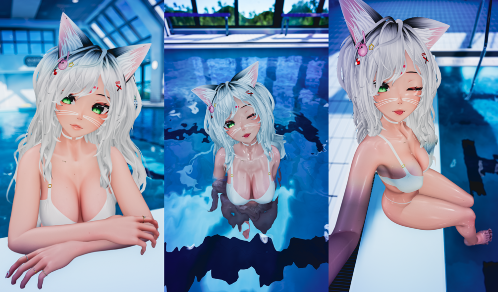 Animal Sets (Cat Set & Puppy Set, Kitty Whiskers), All Piercings, Nails (Nail Art), Hair Pin, Pasties, Poses, All Particles, AFK