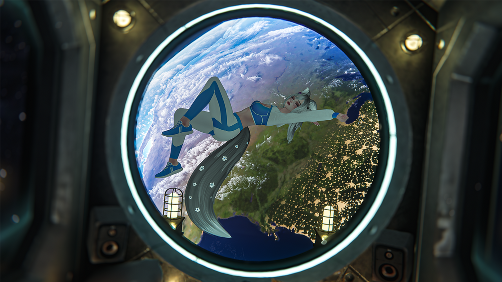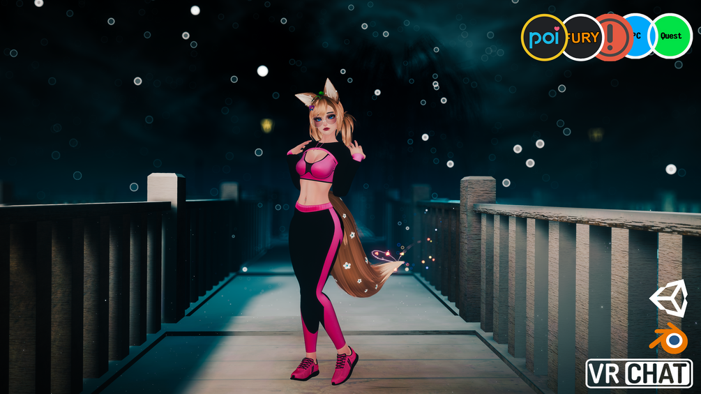 By me: Yoga Outfit (Crop Top, Bra, Pants), All piercings, Nails (Nail Art), Fox Set (Fox Ears & Tail), Glasses, Pasties, Hair Ribbon, Poses, All particles, Thigh Highs, AFK Cloud, Moon, etc.