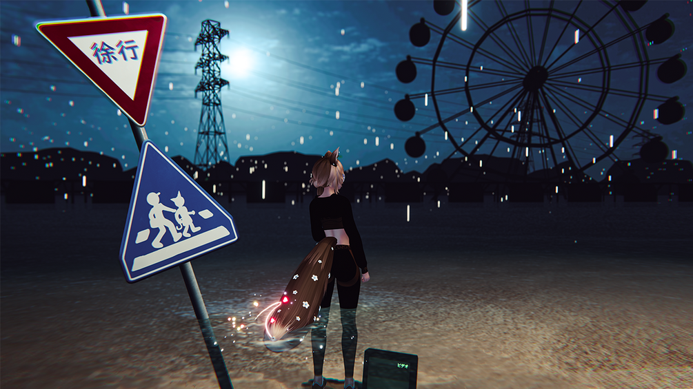 - AudioLink on the hair, fox ears, and tail, Model outline and glitter on the outfit color